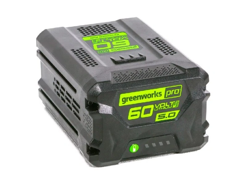 Inovativní, elektronikou řízená lithium-iontová aku baterie Greenworks G60B5 je vhodná pro použití v kombinaci s kterýmkoli strojem z řady Grennworks 60 V. Má napětí 60 V, kapacitu 5 Ah a LED indikaci stavu. Maximální doba nabíjení je 100 minut. V nabídce máme i aku baterie Greenworks s napětím 60 V a kapacitou 2 nebo 4 Ah. Díky vysoce kvalitním bateriovým článkům řazených sério-paralelně přináší nejen delší dobu provozu u jednotlivých strojů, ale zároveň i vyšší výkon než baterie G60B4 a G60B2.